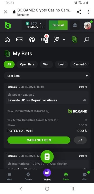 Your entry is invalid in challenge-1 opt-in form. Event's requirement was $5 bet on any BC.GAME original game. While your submission is sports bet link: https://bc.fun/sports?bt-path=%2F%3FbtBookingCode%3D923A168