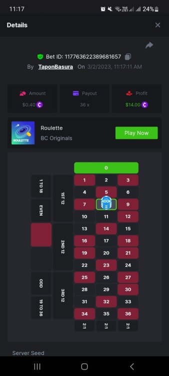 3. Event details: Hunt 36x in roulette 3 in a row Roulette: 36x Hunt: 36x 3 in a row. Place a bet only in 1 number of your choice Minimum bet: 0.01 $BC Rewards: 1st ----- $10 BCD 1st ----- $8 BCD 1st ----- $5 BCD 3rd to 10th ---- 2 BCD each Rules/Guidelines: The first 10 users to submit 3 game links with 36x winning bets, along with the details(UID, Screenshot in chat room or socials, will be the winners!